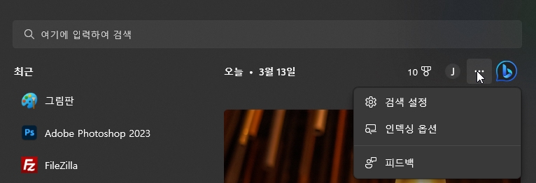 검색창에 마우스를 클릭해보시면 우측으로 ... 메뉴를 보실 수 있습니다.