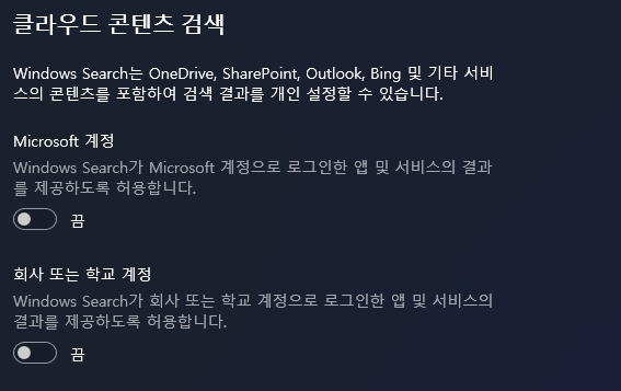 마이크로소프트나 회사계정을 사용중이시라면 검색결과를 계속 허용하고 콘텐츠검색 시 클라우드에서 찾게되므로