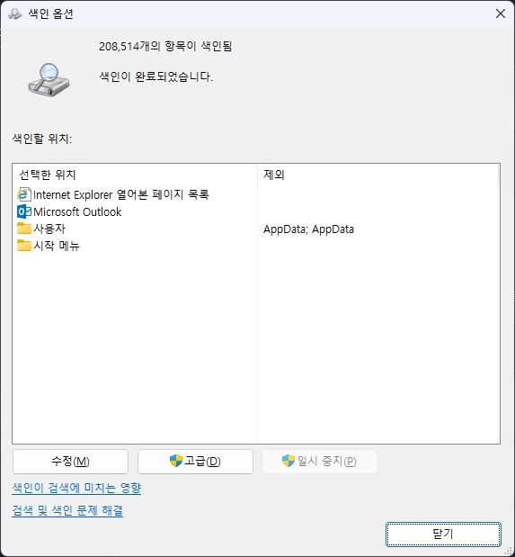 C드라이브쪽이나 Appdata 쪽에 인덱싱설정을 해두시면 좀더 효율적이 검색이 가능합니다.